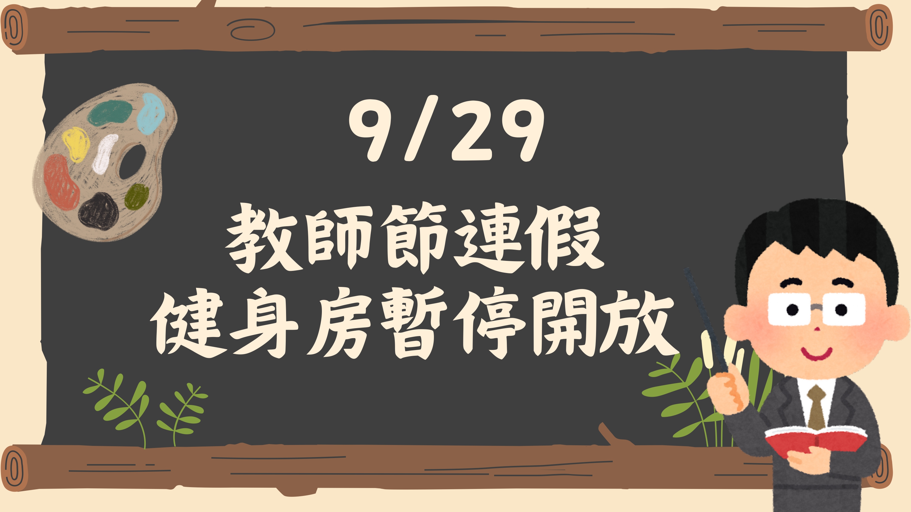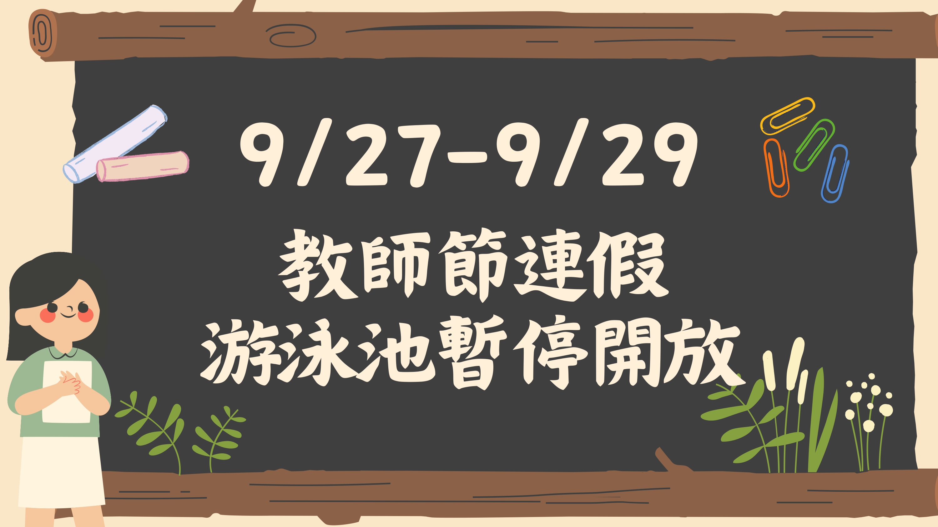 (場地快訊)本校運動場區(游泳池、體育館及體適能教室)教師節連假暫停開放