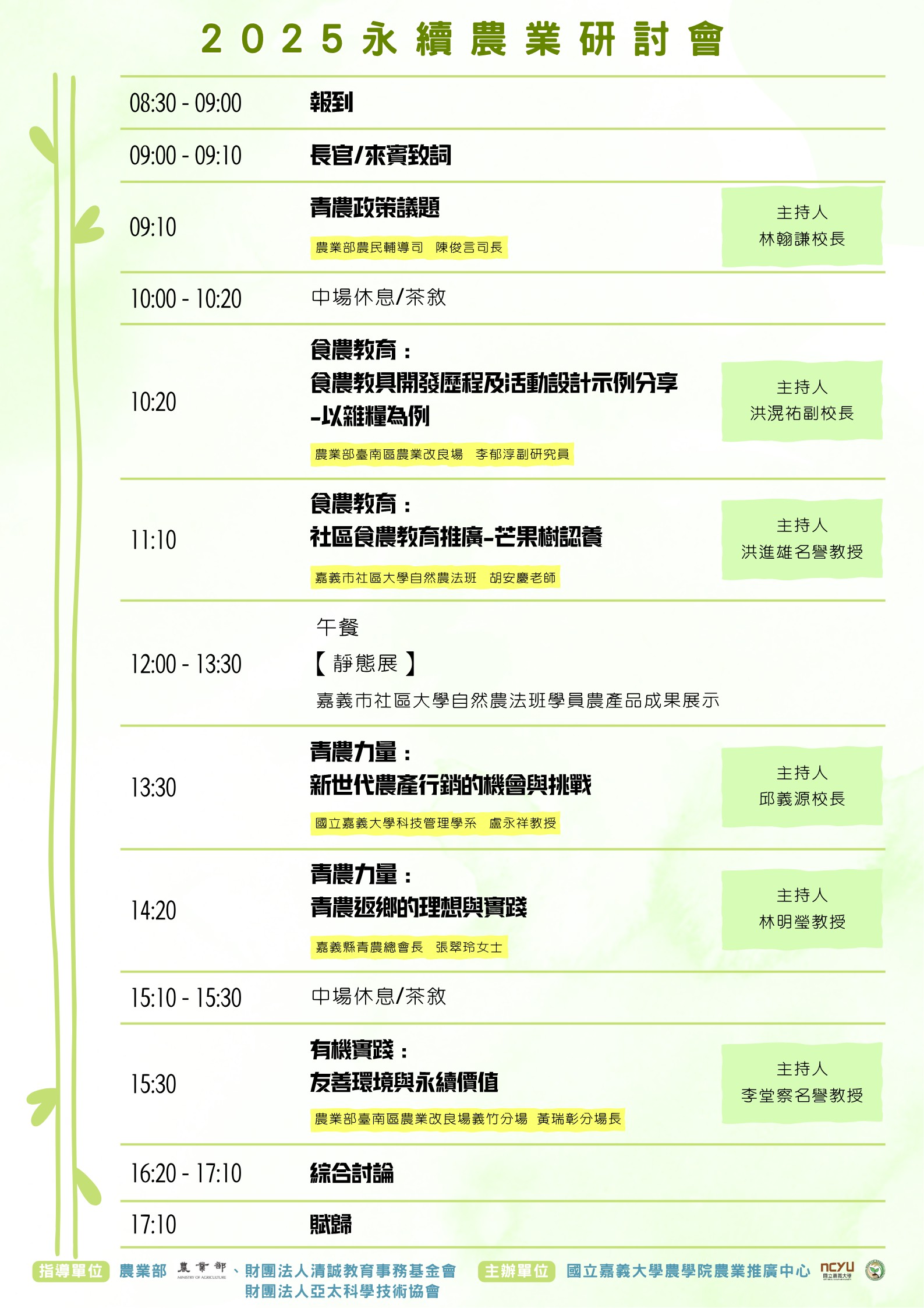二、本次研討會將就食農教育、青農培力及有機農業實踐等面向進行政策跟實務面向之對話,激盪永續農業發展的新方向。