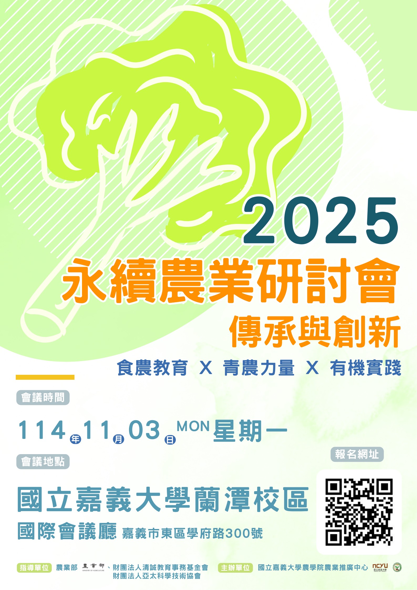 三、研討會活動資訊如下: (一)活動時間:114年11月3日(星期一)上午8時30至下午5時10分止。 (二)活動地點:國立嘉義大學蘭潭校區國際會議廳(嘉義市東區學府路300號國際交流學園1樓) (三)報名方式:採線上報名(https://ppt.cc/fn7wYx) (四)報名自即日起至114月10月31日(星期五)截止,人數上限200名,意者請儘早報名,以免向隅。 (五)本次研討會提供公務人員終身學習認證時數。
