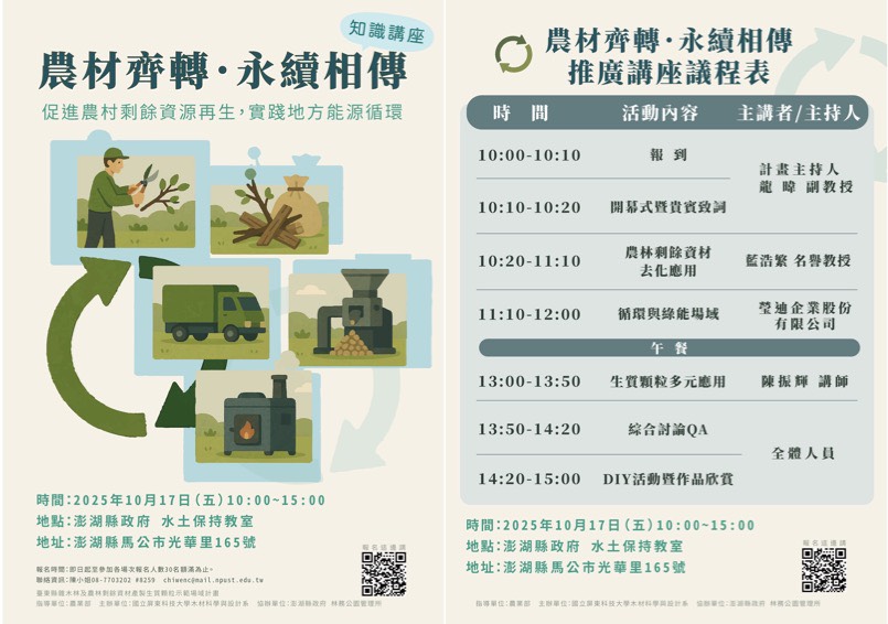 📢 農材齊轉・永續相傳 知識講座 促進農材剩餘資源再生,實踐地方能源循環 🌱(10/17澎湖場次)