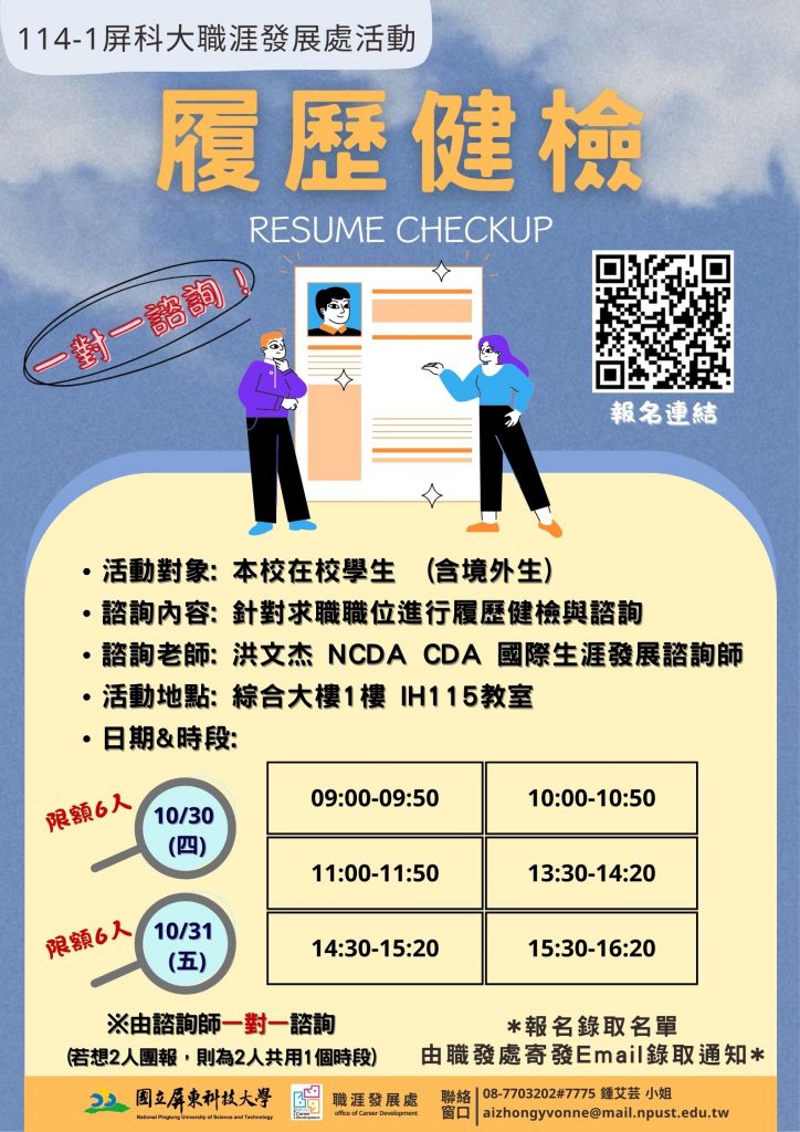 *活動名稱:114-1職涯發展處【履歷健檢】