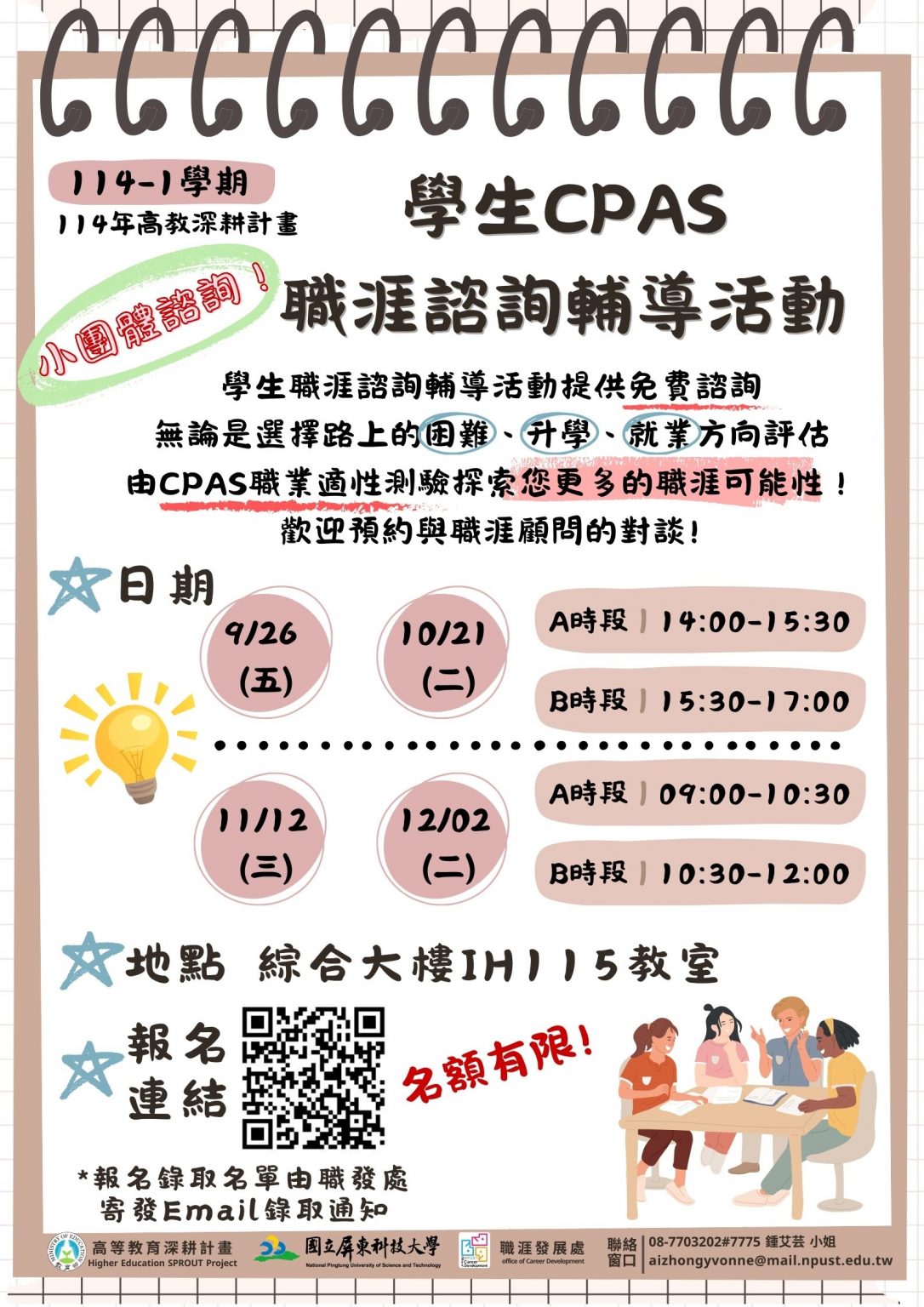 CPAS測驗需搭配參加職涯諮詢特定場次。
