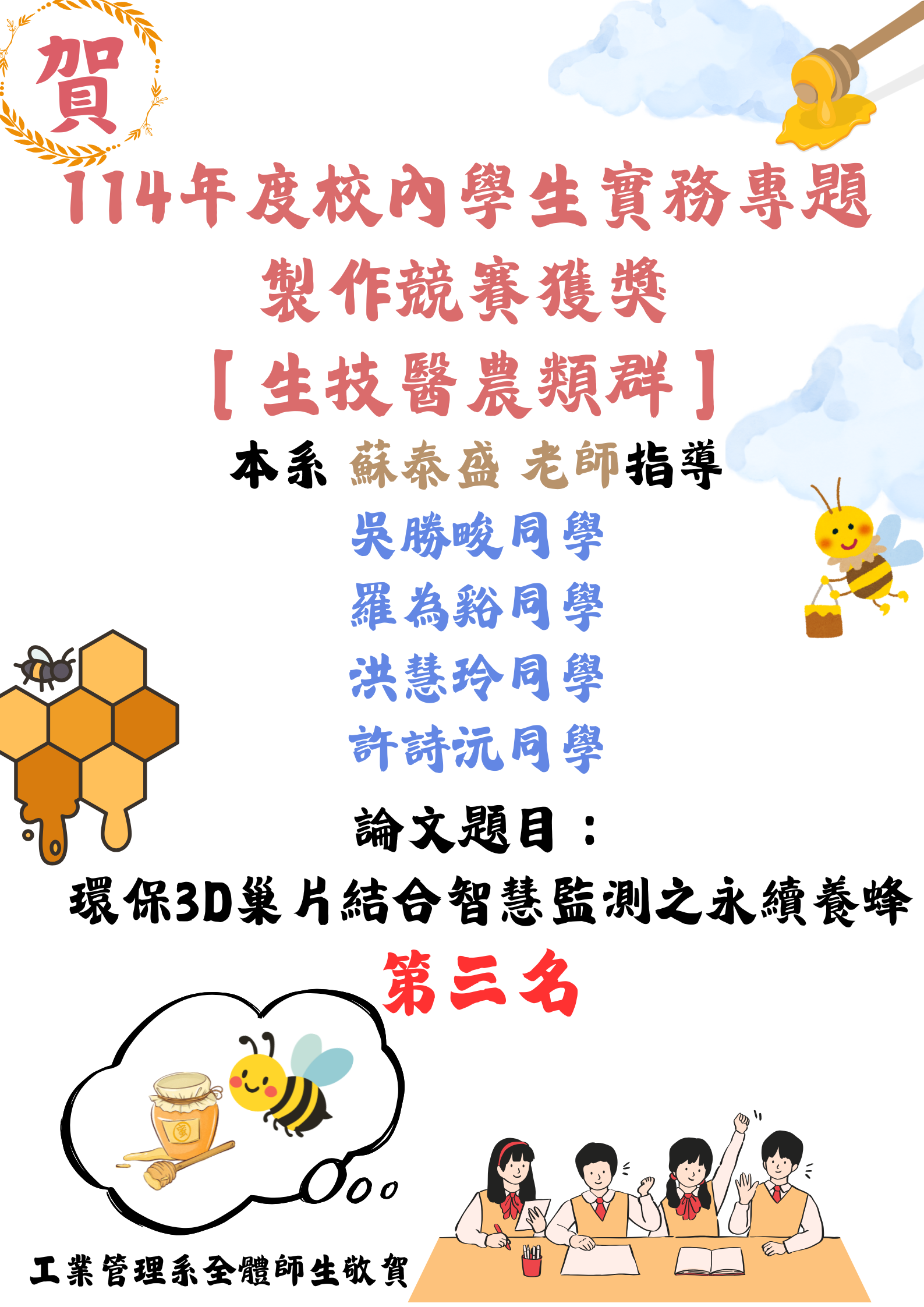 *~恭賀~* 工管系蘇泰盛教授指導大學部學生參加「114年度校內學生實務專題製作競賽」榮獲佳績