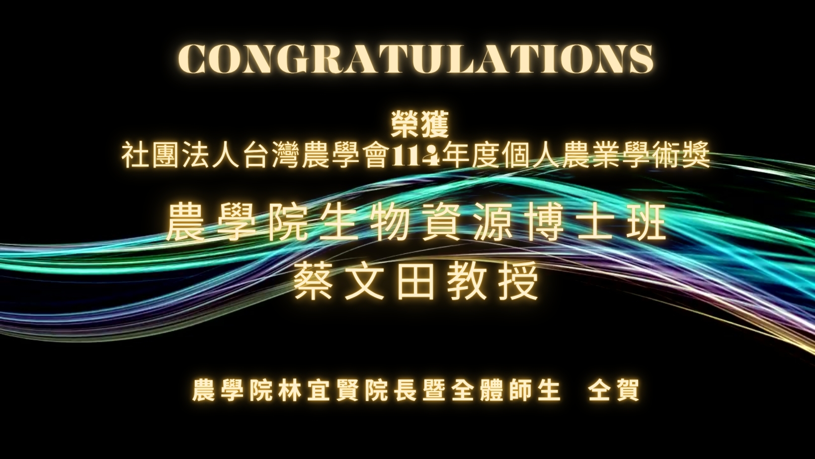 農學院林宜賢院長暨全體師生 仝賀