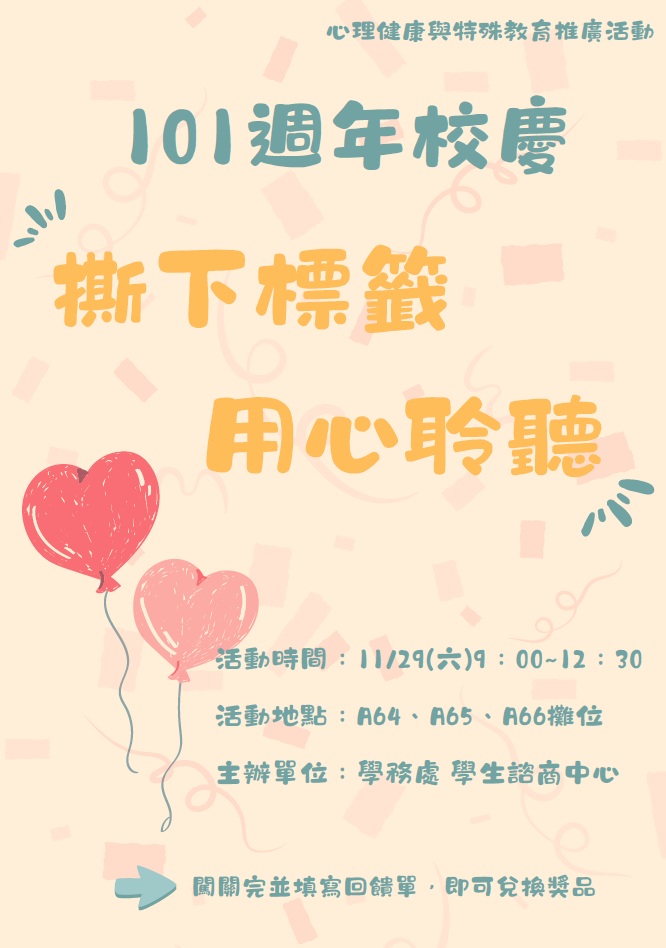 歡慶101週年校慶 學生諮商中心舉辦「撕下標籤、用心聆聽」活動
