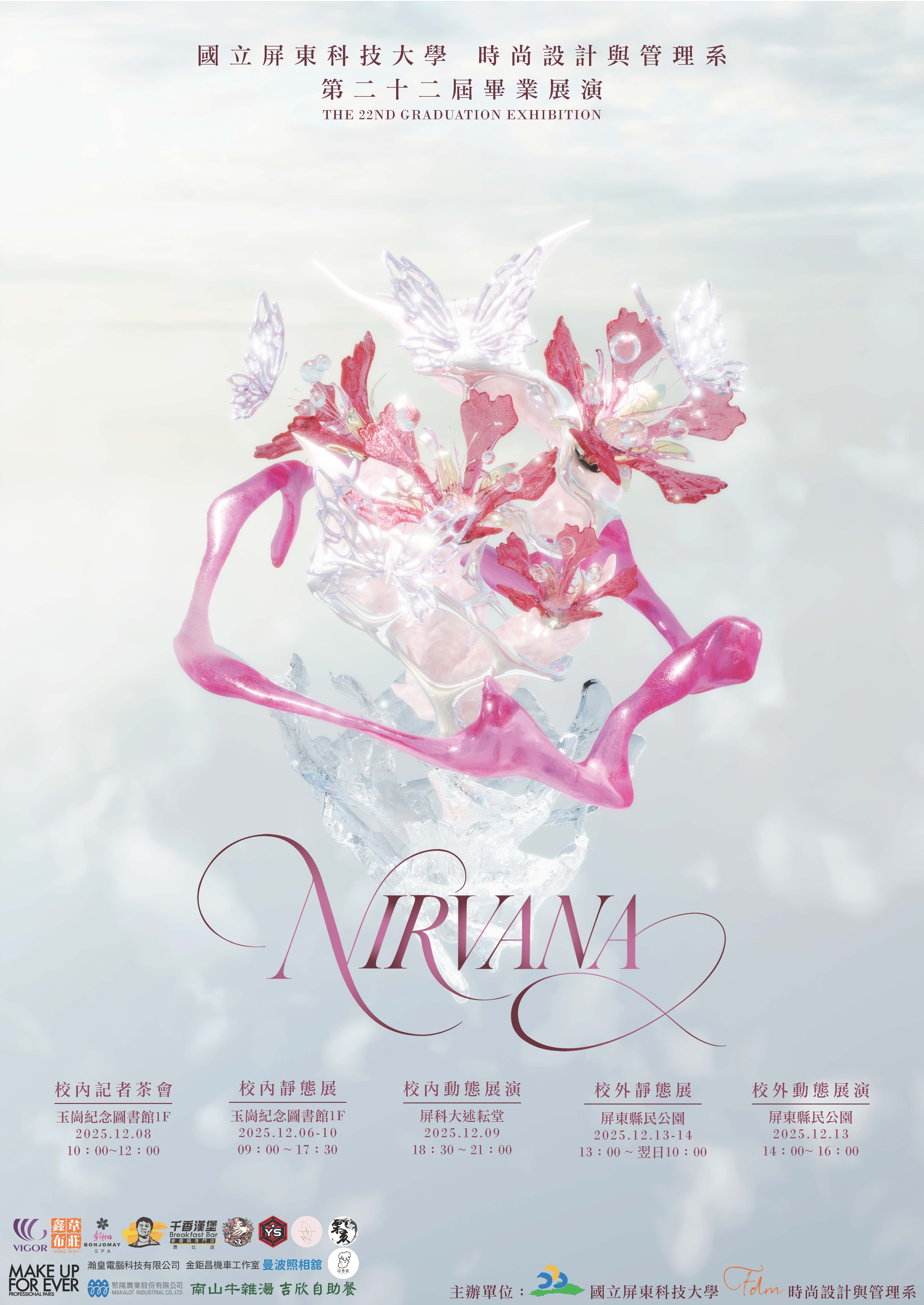 敬邀2025國立屏東科技大學時尚設計與管理系第22屆畢業成果展 – NIRVANA 本屆畢業成果展期程如下