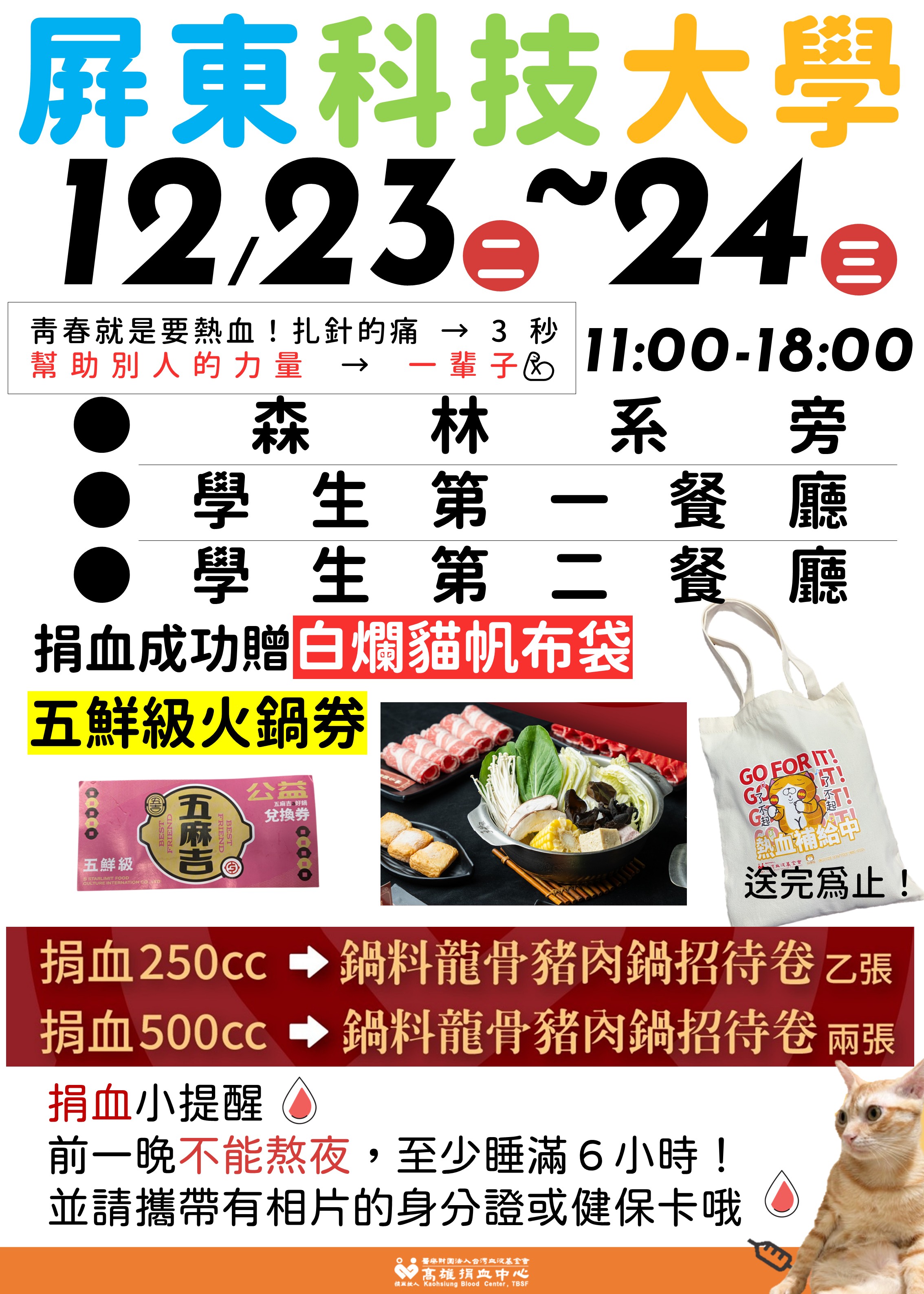【校園捐血活動】3秒幫助別人12/23(星期二)-12/24(星期三) 11:00-18:00 歡迎大家踴躍參加