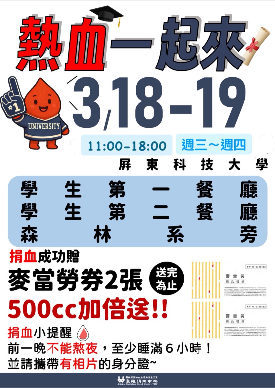 【校園捐血活動】3/18(星期三)-3/19(星期四) 11:00-18:00 #歡迎加入捐血行列#