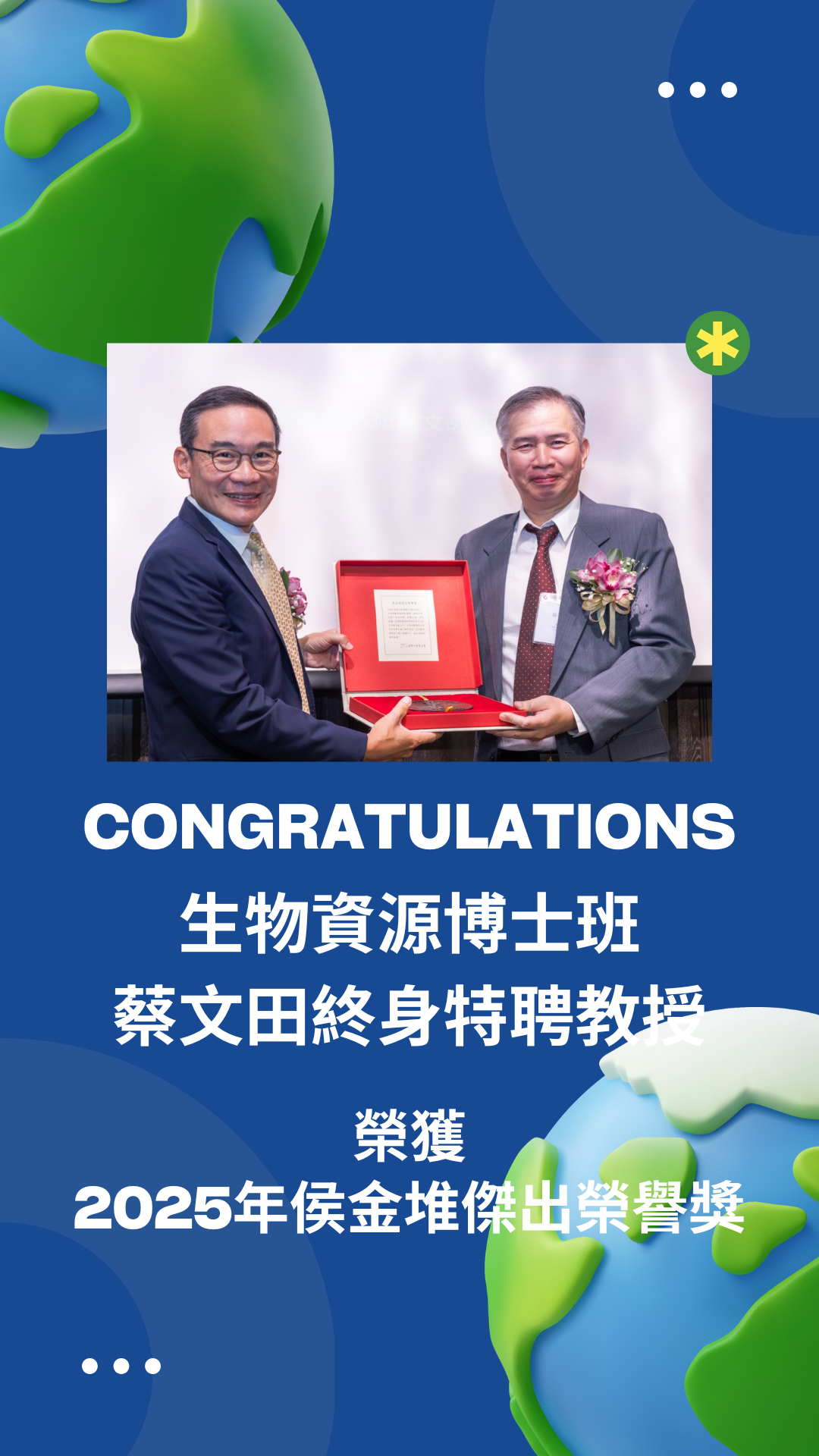 恭喜!農學院蔡文田終身特聘教授榮獲2025年侯金堆傑出榮譽獎。