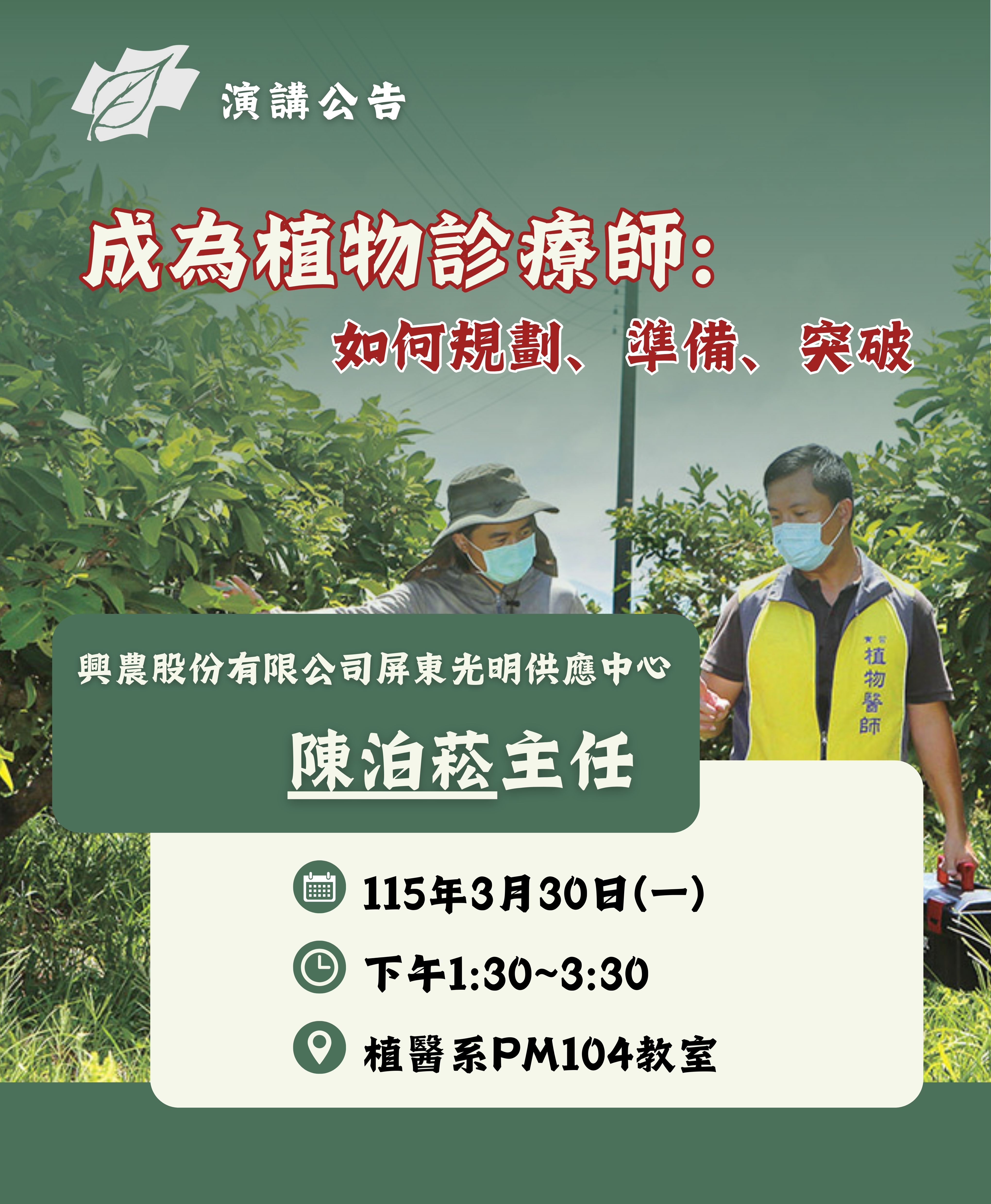 講題: 成為植物診療師: 如何規劃、準備、突破