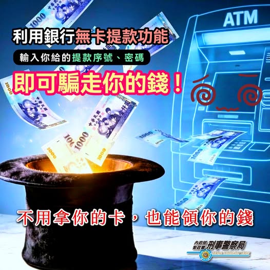 【「無卡提款」竟成詐騙新寵?序號一給,錢秒領光!】 最近詐騙集團盯上了銀行的「無卡提款」功能! 這類詐欺手法多於網購詐騙,他們會謊稱「因交易造成帳戶異常或被凍結」,要求被害人立刻操作「無卡提款功能」,並提供「提款序號及密碼」,被害人一旦交出,車手在短短10至15分鐘內,就能領走你的錢財。 💳無卡提款: 是一種無需實體金融卡,透過銀行行動APP預約後,至ATM輸入序號或掃描QR Code即可領現的服務。 ⚠️ 為什麼銀行很難防? 由於整個操作流程都是由「受害者本人」在手機上發起,銀行系統會判定為合法授權交易,第一時間難以攔截;當你發現不對勁時,錢早就被領走了! 🛡️ 防詐重點: 無卡提款的序號與密碼 = 你的提款卡,若遇到要求提供「無卡提款序號及密碼」,百分之百是詐騙! https://today.line.me/tw/v3/article/Gg5g9YQ?view=topic...... #無卡提款 #防詐宣導 #165反詐騙 #金融安全