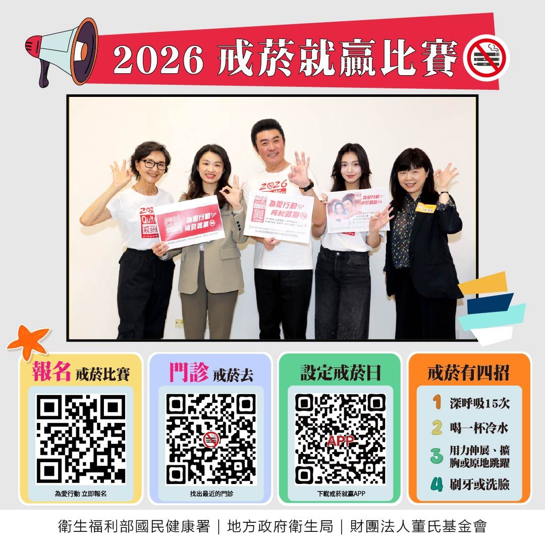 國民健康署、地方政府衛生局、董氏基金會共同舉辦的「2026戒菸就贏比賽」報名開跑。