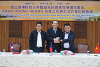 本校於12月27日與越南投資者在寮國協會(簡稱AVIL)陳北河先生理事長及越南在寮國中南部地區投資高科技果樹栽培及畜牧的企業SOUK HOUNG HEANG責任有限公司(簡稱SHH)副董事長陳維松於本校綜合大樓人文講堂簽署合作備忘錄。