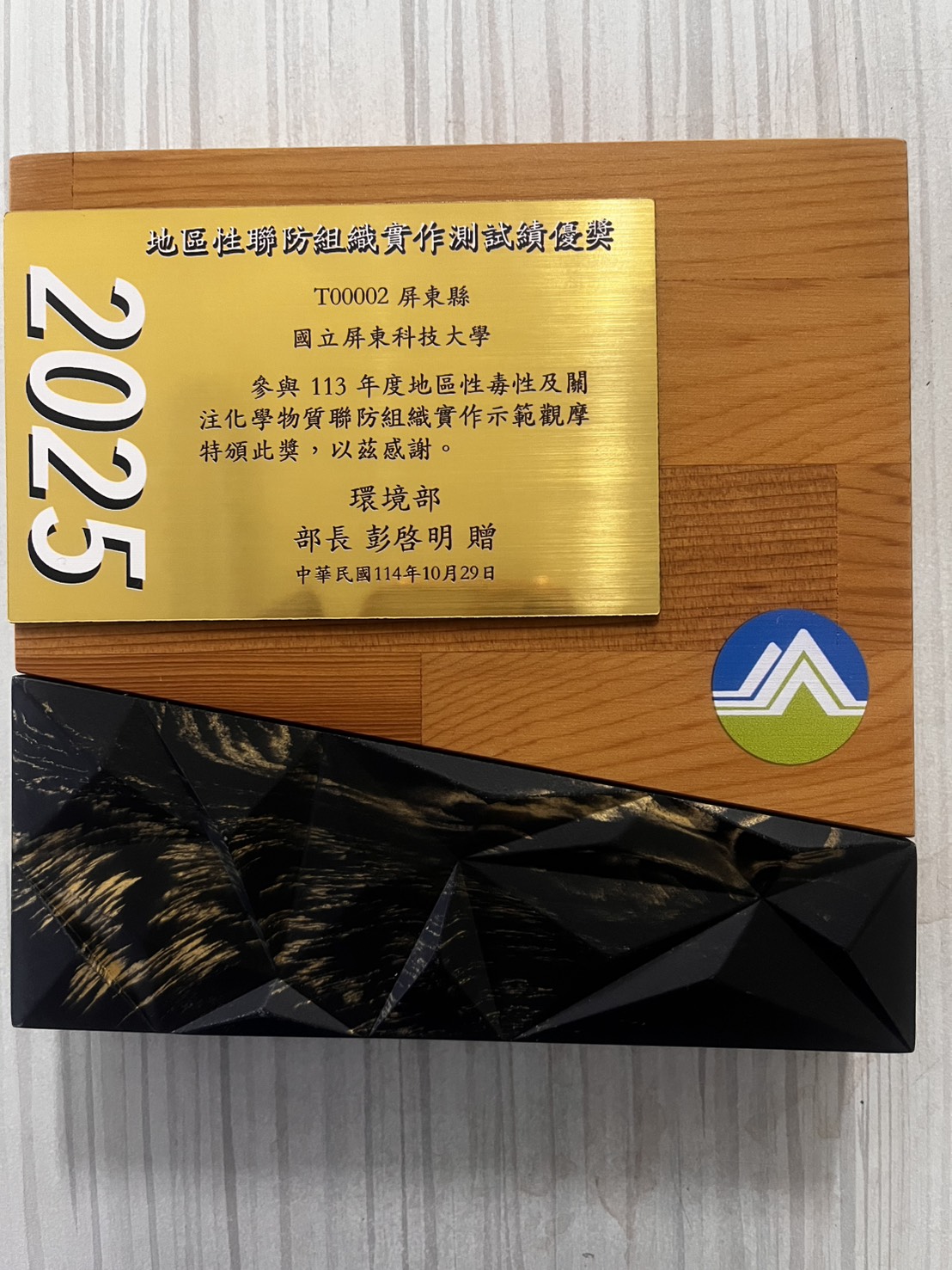 一、本校為毒性及關注化學物質運作場所,也是地區性聯防組織成員之一。 二、環安衛中心為使師生了解毒化災發生時的疏散、應變程序。於113年11月13日辦理一場毒災演練,演練情境為地震引起學實驗室藥品櫃倒塌,多種化學品互相混和,可能因不相容反應,產生大量白煙刺激性氣體。 三、演練由環工系邱春惠老師與蔡仁雄老師帶領學生參演,進行疏散避難。以及動員聯防小組-內埔工業區的鄰廠,協助進行止漏及除污作業。並通報環保局及環境部毒災應變隊協助現場環境偵檢及指導。 四、演練獲得環境部認可及嘉許,並頒發本校『地區性聯防組織實作測試績優獎』獎牌一面,以茲鼓勵。
